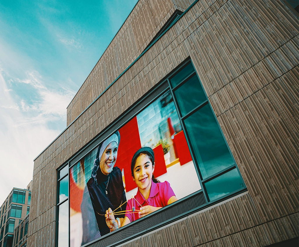 Pair the outdoor wall display with Tacteasy interactive panels for indoor continuity.